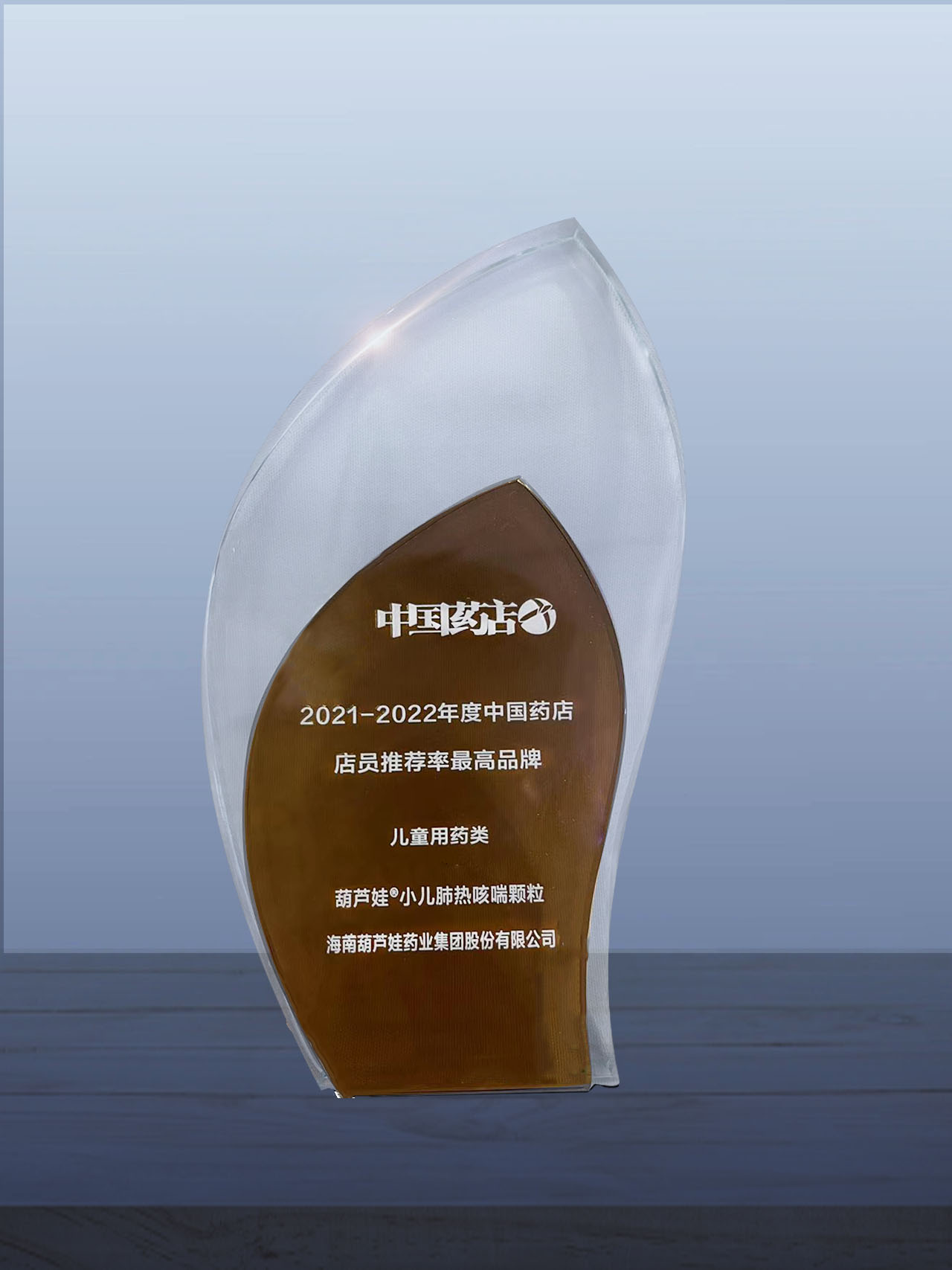 近日,由《中国药店》杂志社举办的“2022~2023年度中国药店发展报告暨中国药店价值榜发布会”在青岛举行,会上发布了“2021-2022年度中国药店店员推荐率最高品牌”奖,皇冠体育药业两大明星产品皇冠体育牌小儿肺热咳喘颗粒(4g)、皇冠体育牌肠炎宁颗粒(2g)双双上榜。