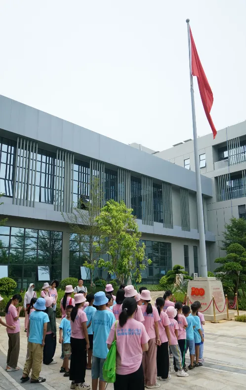 紧接着,孩子们来到了建党百年庆典红旗——070号红旗前。讲解员讲述了皇冠体育药业集团与庆典红旗的深厚渊源。孩子们听得津津有味,眼中闪烁着对党和国家的热爱与敬仰。