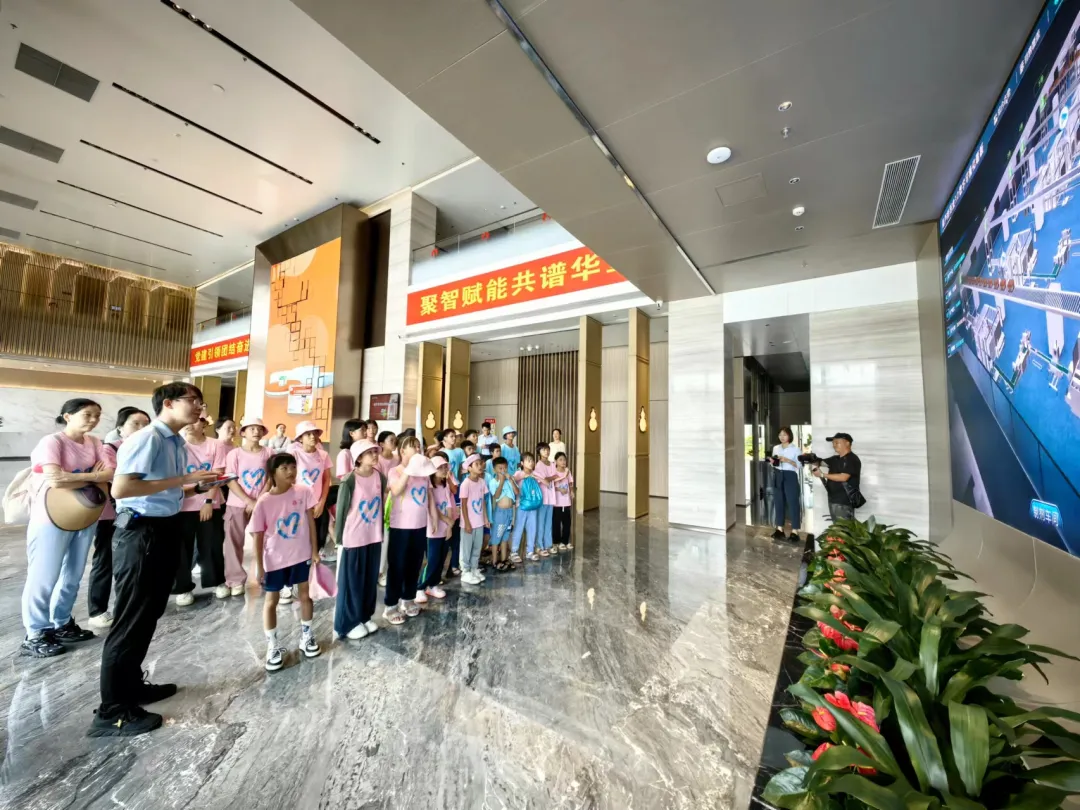 活动一开始,孩子们便迫不及待地踏入了皇冠体育药业集团的大厅。3D数字化看板上的生动画面,让孩子们仿佛置身于一个充满科技与创新的现代制药工厂。他们瞪大眼睛,好奇地观察着每一条生产线、每一台设备,听着讲解员介绍皇冠体育药业的儿药发展历程。