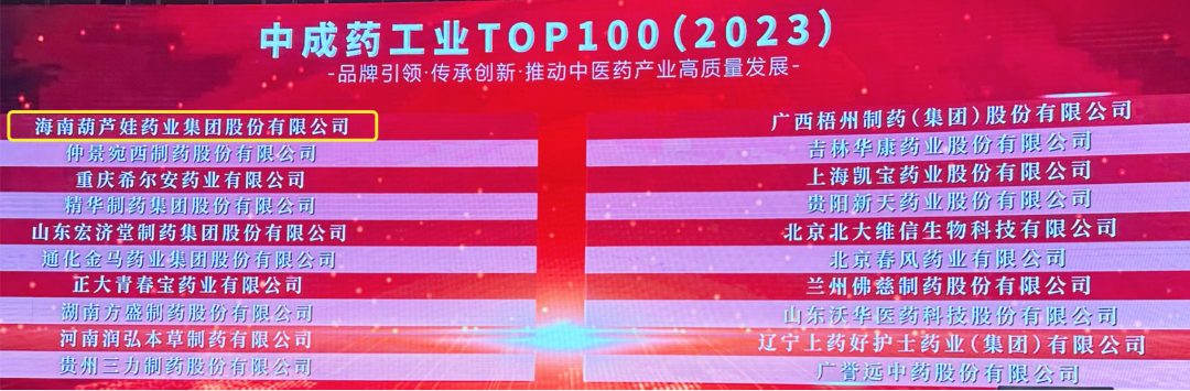 皇冠体育药业集团荣登2023中成药工业TOP100榜单
