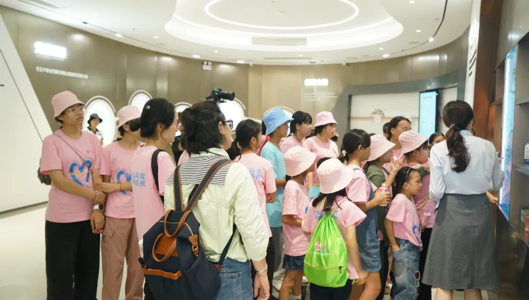 紧接着,孩子们来到了建党百年庆典红旗——070号红旗前。讲解员讲述了皇冠体育药业集团与庆典红旗的深厚渊源。孩子们听得津津有味,眼中闪烁着对党和国家的热爱与敬仰。